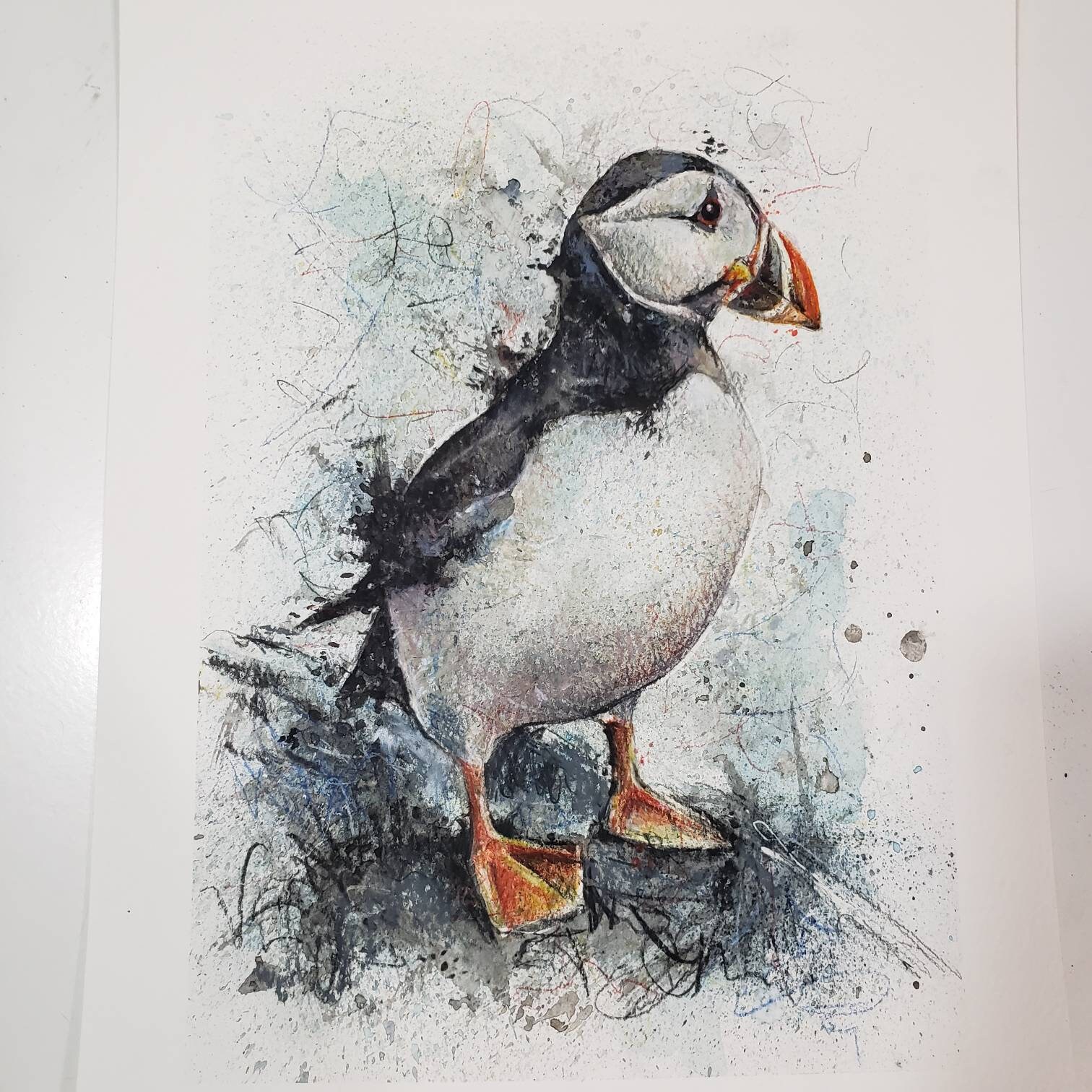 Atlantic Puffin Original Watercolor Splatter Illustration Etsy Uk